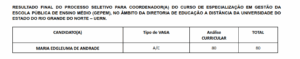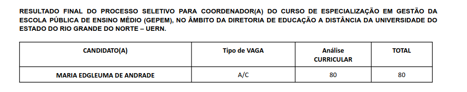 A DEaD acaba de divulgar o Resultado Final do processo seletivo para atuar como Coordenador(a) no Curso de Especialização em Gestão da Escola Pública de Ensino Médio (GEPEM), referente ao Edital nº 007/2025.