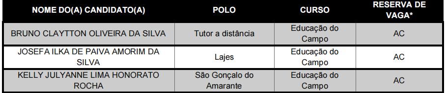 Os nomes dos candidatos selecionados pode ser encontrado logo abaixo: