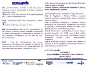 A Coordenação do Polo Associado EaD de Patu, convida a comunidade EAD dos cursos na modalidade a distância a participarem do V Encontro de Acolhida e Boas Vindas do Polo EAD de Patu.