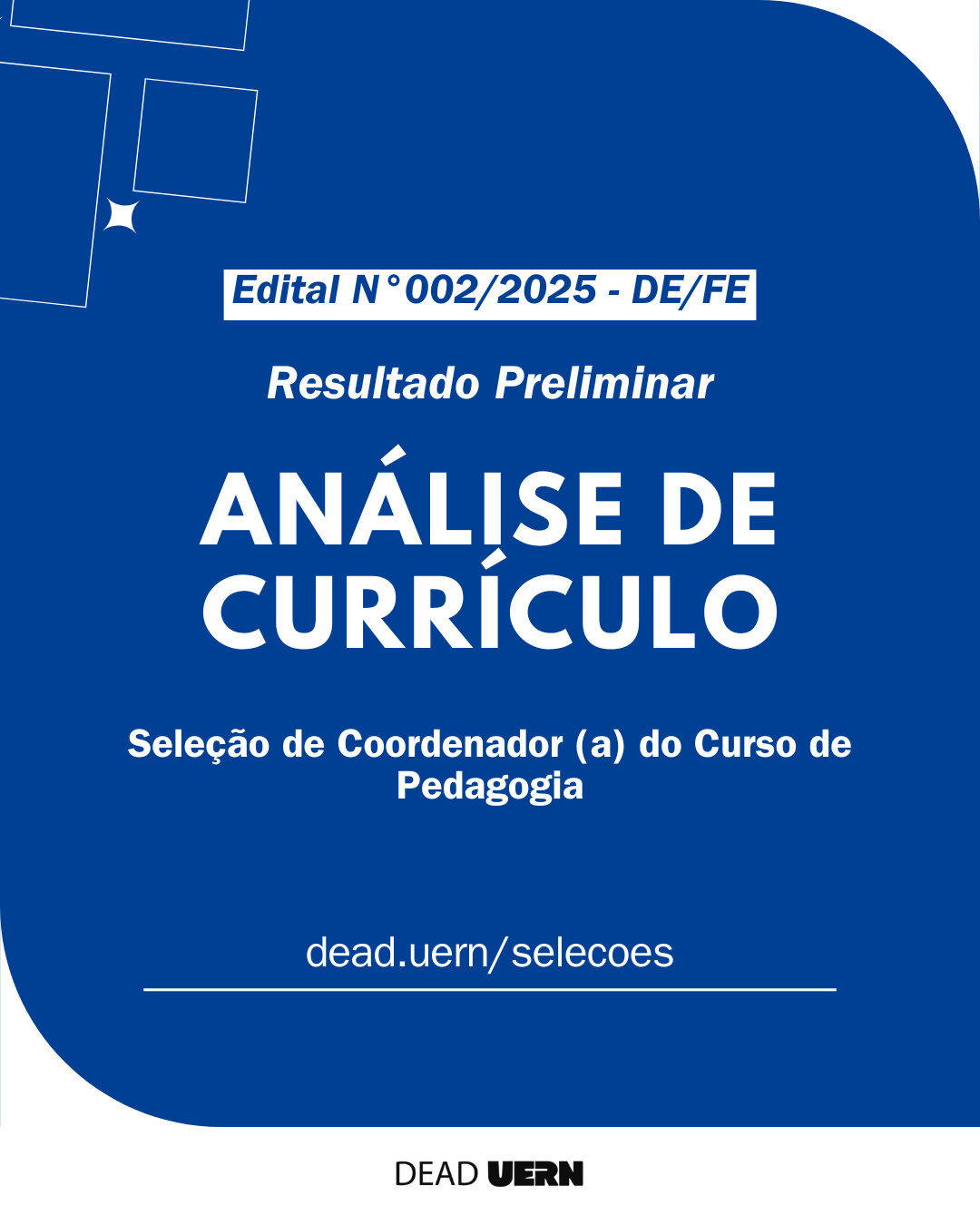 Seleção para Coordenador do Curso de Pedagogia – Edital Nº002/2025 – DE/FE